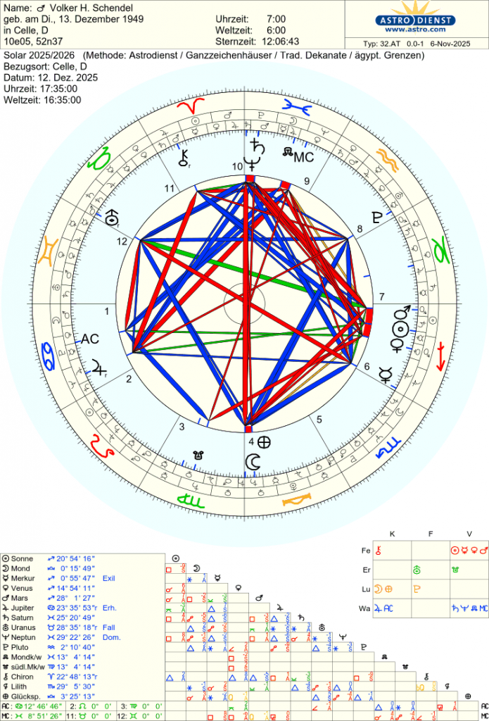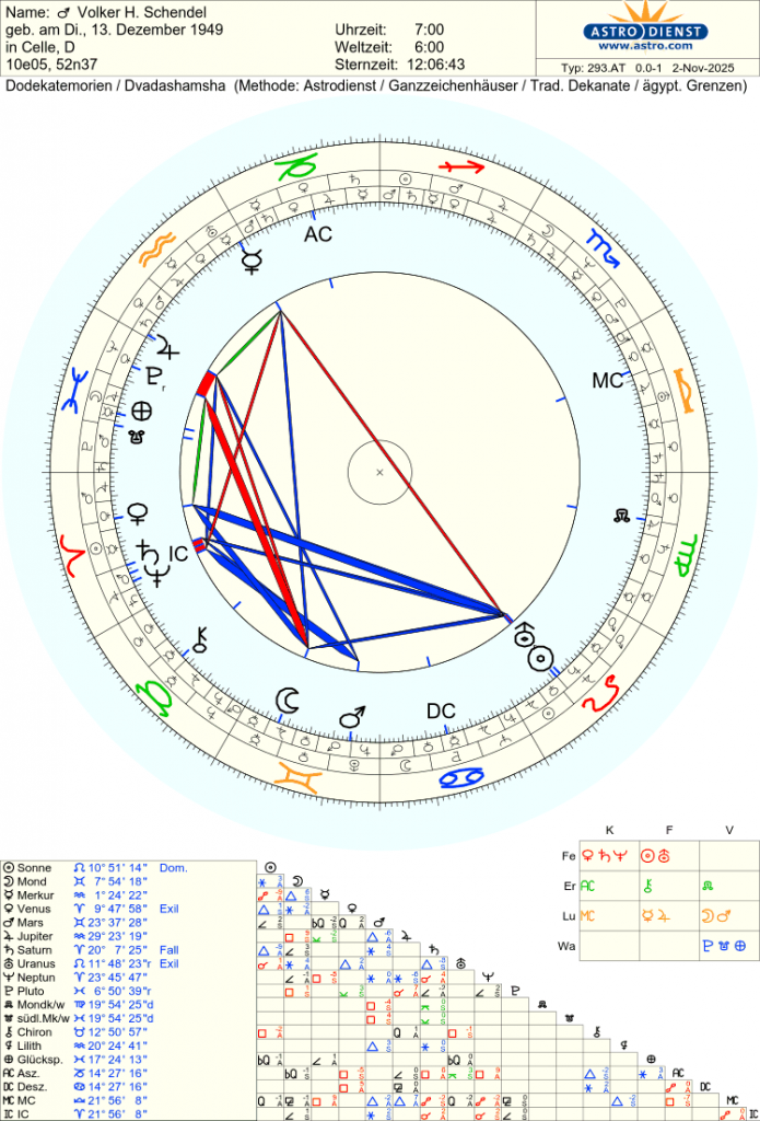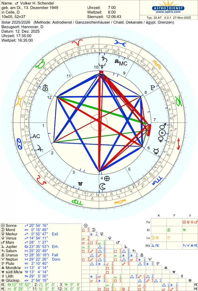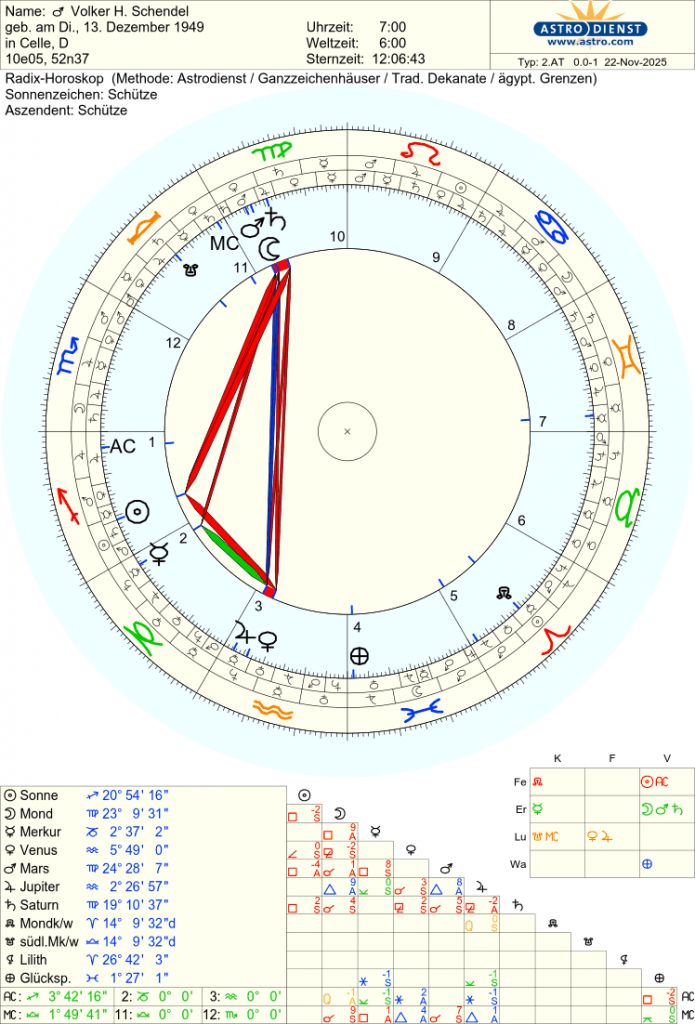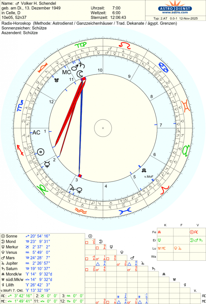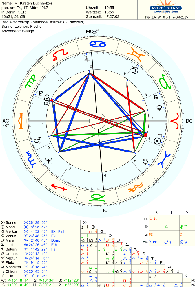 - Mars im Skorpion Quadrat Saturn in Löwe, Sonne im Widder Trigon Venus im Löwe, Mond Opposition Jupiter in Wassermann.