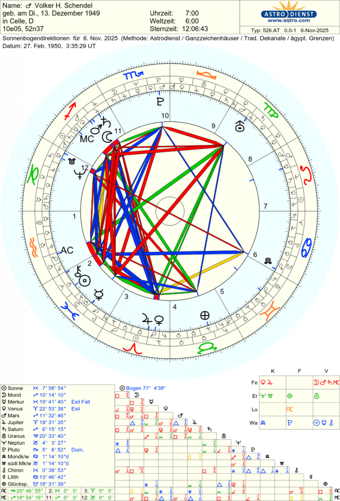 - Voll entwickelte Horoskopastrologie mit Planeten, Häusern, Aspekten, Lospunkten (Pars Fortunae).